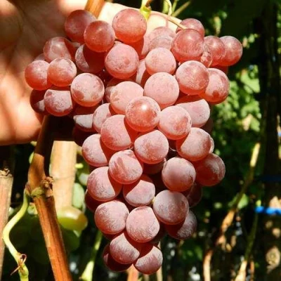 У меня растет "Кишмиш красный" (покупала как саженец из питомника без уточнения формы). Очень нравится, что он не трещит после дождей, в отличие от зеленых сортов. Вкус очень сладкий, даже приторный. Зимует под сухим укрытием (доски + рубероид) отлично. Для новичков: не пугайтесь, что он долго стоит зеленым. Краснеть он начинает буквально за 10 дней до полной спелости